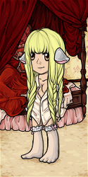 In Their Own Words: That's Chi, the persocom out of the Manga Chobits. She was searching for something to wear in Hideki's bedroom. And she found something.