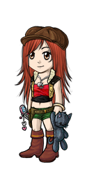 She never parts with her homemade stuffed animal, Mr. Mew. During the game, Missions are received on the characters' phones, hence both items are added to the HA