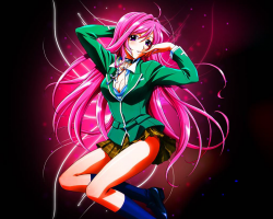 Moka is a vampire of royal lineage with a split personality! Her rosary helps to keep her darker side at bay, but both selves love the taste of Tsukune's blood!