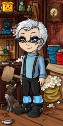 I've always been a huge fan of classic Disney, and I based my avatar on Geppetto in the days before Pinocchio came into existence. Geppetto stands in his workshop, hammer at the ready and his kitten Figaro at his side.