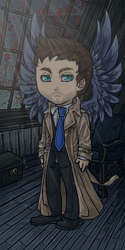 In Their Own Words: Hi, this is Castiel with his feathery butt showing off his wings. I hope you like him and don't forget to give him his pie!