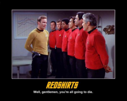 In Their Own Words: This is my homage to the humble redshirt from the original StarTrek series. The hapless redshirt would inevitably manage to be killed by flowers,infested with brainslugs or otherwise meet an unfortunate end.