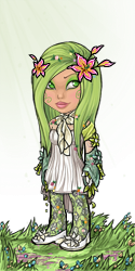 This is a personification of the pokemon shaymin. I think it is really cute, so I thought I should try to make an avatar with the colour scheme and those cute little flowers :)
