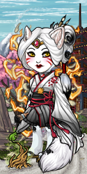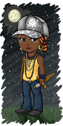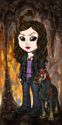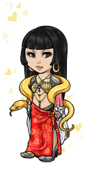 I included her snake, as well as her outfit with cape and high slit skirt and high heeled shoes. Her expression was carefully chosen.