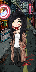 She died that night, but it is said that she is still seen wandering the cities of Japan. She travels with a doctor's mask covering her mouth, and she will stop young children in the street to ask them if they think she's pretty. Seeing only her eyes and hair, the answer is of course "Yes!" She then rips off her mask, exposing her wound, and asks the question again. "Am I pretty...?"