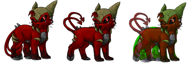 The Darkonite has always been one of my favorite pets, and I am quite pleased with this newest pass at a revision. I wouldn't call it perfect, but it's certainly much better quality than the current graphic and I could live with this change if it were implemented as-is. As others have said, my number one concern is the downward tails. Simply making the tails flow upward would make this graphic just about perfect in my opinion. Another thing others have said is that is looks shy, or cutesie. I'm afraid I cannot agree with this. I think the artist did a great job with the expression, I would not object to adding a little bit more of a grimace, but I think the somewhat passive-aggressive body language and unreadable expression it has going on is the perfect cover-up for all the dark thoughts that must be going on inside it's plotting little head. Speaking of it's head, I must say I support that the artist chose to thicken it's ear spikes. Helps quite a lot in making it's head look less bulbous, and the cracked texture is just divine. In fact, the texture throughout the graphic is a huge improvement from the current one as well as any of the past revisions. May favorite things are the boney plates, they look fantastically smooth and sharp, while the belly has a very dull shine to it, which I also love. It makes the belly look more natural, rather than metallic and strange as other revamps have attempted to do. I think every part of the Darkonite fits together fantastically in this revamp. Nothing seems out of place about it, this is a real, solidly put-together animal we have here. Just edit those tails and we'll have a winner! Thank you, artists.