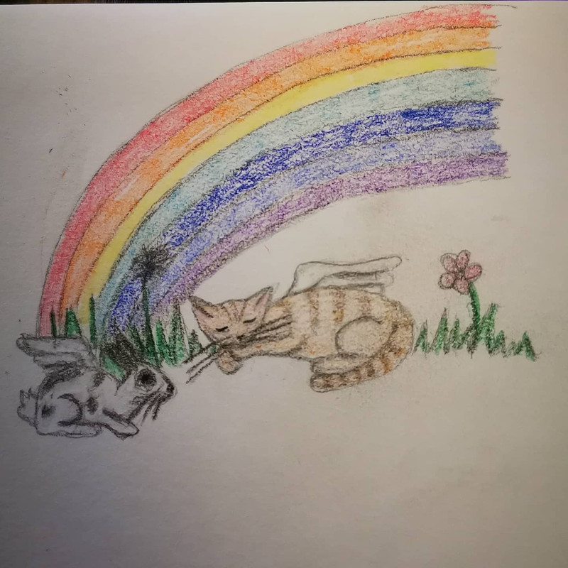 I hope you are at rest, my sweet girl. I hope you've found Puzzle, and that you two are free to run in endless grassy meadows for eternity. Tell him we miss him, so very much too. And if you see a furry black cat that is kind of skittish named Trouble and a mischievous tuxedo cat name Tux, tell my boys I miss them dearly.