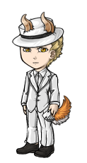 - small deer antlers poking through his hat