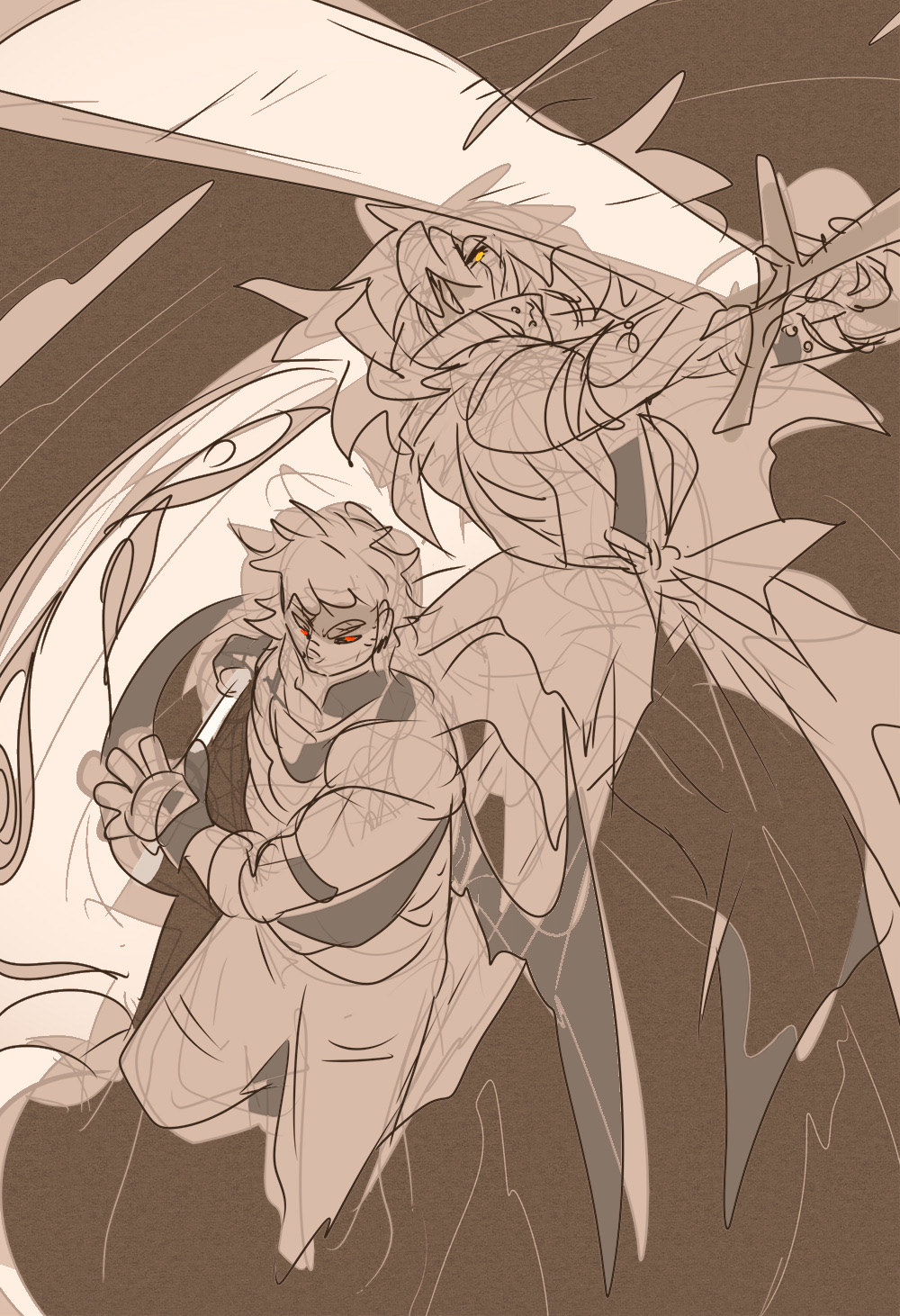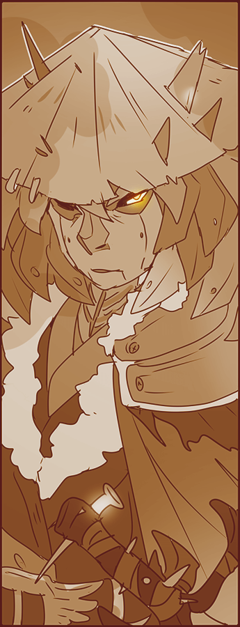 A shambling half-roboticized shapeshifter with a massive sword who is often used as a mercenary for the Corpus family. He has awful luck and has been falling apart slowly for years, but remains upright and compliant to anything his boss asks for. He and Van used to be on equal footing but Tyr has fallen behind in that rivalry, he's just too sentimental to retire.