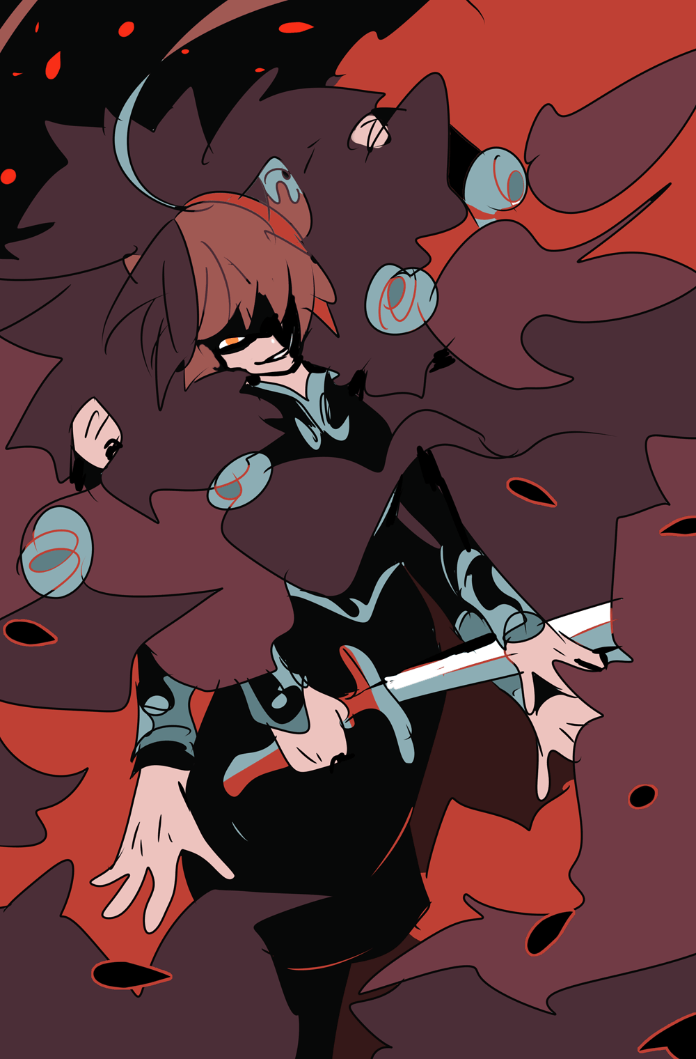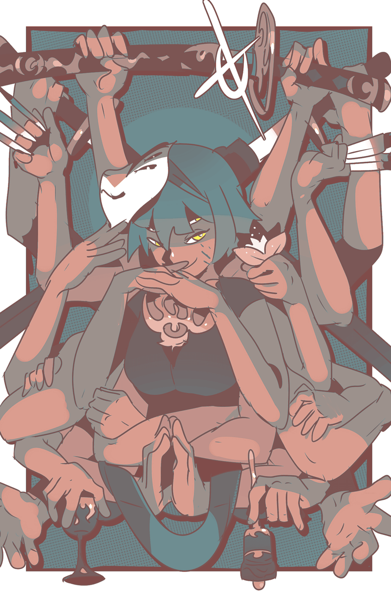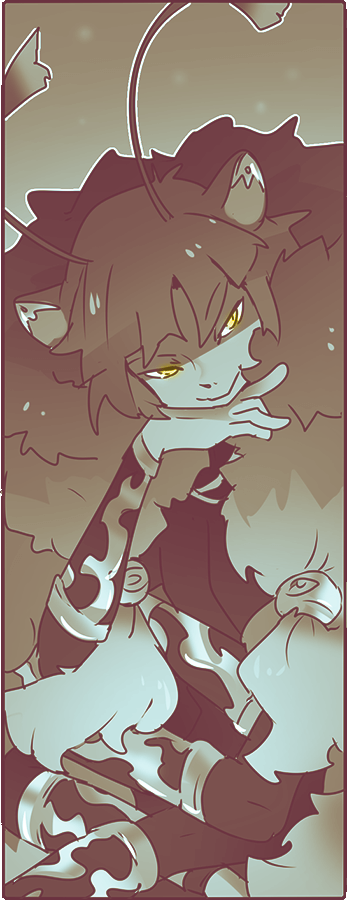 The fanciful queen of the Face Eater shapeshifter clan, one of the oldest remaining families made entirely of natural clones, roaming the snowy mountains. They had won many a historic blood feud, and other shifters tend to stay out of their path. Ran performs their traditional vicious ritual, but their prey are running low so she has been considering moving outward- potential disaster for other shifters who are already having territory spats with humans. Her true feelings are not ever obvious, but she seems to enjoy embarassing (and threatening) her clone/daughter and her friends. And good food!