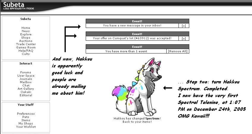 It really wasn't a bad deal when you thought about it. Really, it wasn't.At least, not for someone like Nite.Besides, Fritz had a way of conveying it to him in very... convincing ways.This wasn't the first time he'd stolen one of these kinds of cars. One would think if a person was going to buy a car that cost more than half a million dollars, they'd buy one that came with a better security system. Or at least spend another hundred bucks and have one put in. But that really wasn't his problem now was it? No, three paper clips, a screwdriver and a broken half of a CD and Nite was soon to be on his way to driving out of this garage with a rather expensive new toy. He'd fence it, most likely. It was worth more to him in hard cash right now, even if it was a fast car, and Nite really, really did like fast cars. But he raced with other cars. More... discreet cars. There were less questions asked when you drove a car that looked the same as a thousand other cars in the city. Less likely for the police to pull you over when your car had the same bland exterior as the one next to it. Nevermind that what was under the hood was a different breed entirely, since when did police ever look that far? Never, he answered himself as he wiggled the broken half of a CD into the narrow gap under the oil pan to wedge it between the gaps into the lock control chips. He wiggled himself back out from under the low-slung car, white-furred ears dragging along the cement floor. Still, it was clean cement, no oil spots or puddles of radiator exhaust. Of course a garage like this would be clean though, it belonged to some rich snob who obviously had more money than brains. Whoever they were, they probably had some servant or other, the poor sop, who came in here and cleaned the floor. It was really a silly thought to Nite, to waste money on something like that, but he was still thankful that his victim's money kept his white fur clean that evening as he pushed himself off the floor, pulling the bent paper clips out of a pocket. The first one went in, twisted, and wedged down in the bottom of the keyhole, while the second he pushed up to the top of the same opening, listening with his head pressed against the side of the door, until he felt as much as heard the pop of the metal pins sticking. He released both slowly, satisfied as they held their positions that he had done the most difficult part. He pulled the third and final paper clip from his pocket, and eyeing the keyhole closely, as if it were some great prize (to Nite, it was), he jabbed the end of the paper clip into the center of the keyhole. The resulting ping of the lock mechanism opening cracked a grin on his face, and he pushed himself up from his knees on the floor to stand and open the unlocked door. The smooth click of the door cracking open only further confirmed his success, from here it was just... Nite never did finish that thought. Sharp pain blossomed from his chest as a cloven hoof connected, the force knocking him back against the door he had just opened, slamming it shut as his skull whipped back into the driver's window with a dull thunk. His vision blurred as his knees buckled under him, sending him sliding down to the ground, back up against the car he had just sought to steal. He gasped for breath, but nothing happened that first try, only more pain as his vision continued to swim. He tried again, his already excruciating chest now screaming for oxygen, managing only a short gulp of air that sound more like a hiccup as his head rolled down and forward towards his chest. Slowly through the pain his vision cleared enough for him to see the source of his demise, a pair of sharply cloven burgundy hooves placed squarely on the smooth cement before him, deep crimson fetlocks falling behind them to brush upon the spotless floor. Well, not spotless anymore, as a drop of bright blood ran from Nite's black nose to fall upon the cement. So much brighter red than the fur that belonged to the two hooves in front of him, Nite's foggy mind mused in a daze, so slow he didn't even notice that there was only one hoof in front of him. Didn't notice that they had moved until his head was once again slammed up against the car door, forcing a gasp of pain up from his lungs to escape from his muzzle as his eyes rolled up, vision blurring again as he tried to focus on.... something gold? "Do I have your attention now?" The voice was calm, even, and bonechilling. The hard hooves pressed into the canine's chest, forcing him to push himself back and up against the car to be able to breath as Nite quickly made a small nod of comprehension through the throbbing in his skull. "I don't appreciate people distracting me from my work. I'm a very busy person, so you know, and these distractions," The sharp hooves clenched slightly on Nite's chest then, forcing another small gasp, "Do not bode well with my schedule." When Hakkou was born, he went with them, fairly well bi-lingual by the age of six. And when the yakuza and mafia decided to expand into Centropolis, Hakkou's parents were sent to help head the operation. When the young spectral Telenine came of age, he was already well familiar with operation and had proven himself quite useful. Although the occasional bickering between the families led to him being kidnapped more than once... And when it was decided they needed a more 'legal' looking front, Hakkou, already well known for his smooth-talking charm that had diffused multiple difficult situations within the family in the past, became the choice. So he 'opened' and escort and transport service, and sought to find residence in a 'normal' house, away from something that could be linked to the family. He found the add for Tsuichi's house, no less. Confident in his ability to evade her notice, he moved in. The question remains though, just how much do his 'roomies' know, and what are they going to do about it? How to make a Spectral Telenine - with pictures! |