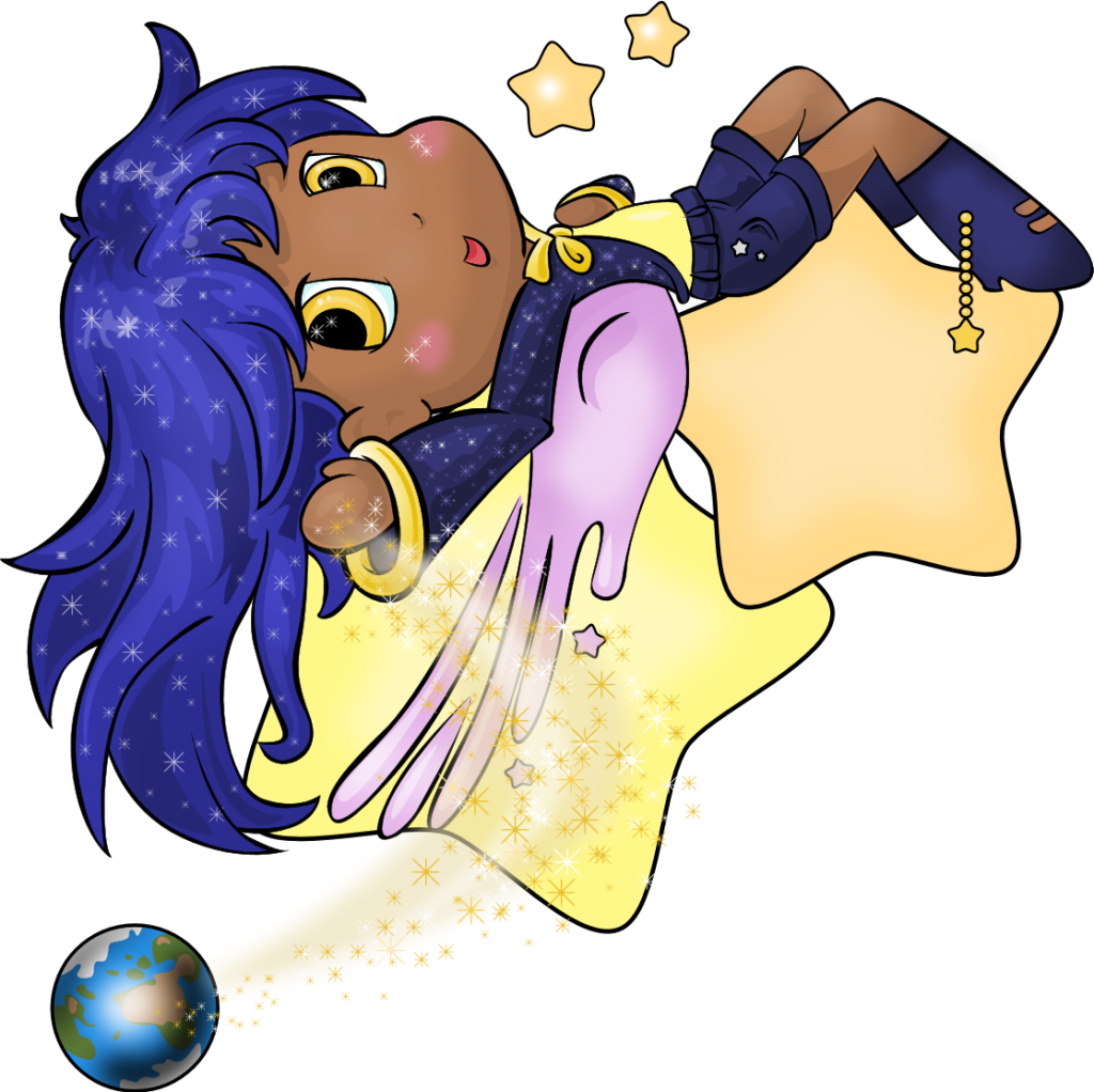 The Star got closer and closer until it landed just in front of The Little Onigiri. It was such a pretty star, with long blue hair and golden eyes. "I'm sorry I made you fall with my wishing, pretty star. If you want, I'll help you get back to the sky." The star chuckled at the suggestion. "Oh no, little Onigiri. I'm here to answer your question. You did ask me after all. It would be rude not answer."The Little Onigiri perked up at the thought. "Really! So you're going to give me something to make me special? What is it? Wings like yours so I can fly or golden star dust so I can be the prettiest Onigiri in the world or..."