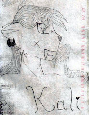 Perhaps it was fate, rather than loyalty or mother instinct, that drove a lone female to smuggle the pup far from the pack’s grounds. Little could be done for her though, and through no fault of her caretaker, she found herself in the hands of slave traders. She was purchased like a sack of grain, in her infancy, by the lord of a small human town. This lord’s name is lost to us, as the only living resident of the town refuses to utter his name. She was brought with the others purchased to be inspected. As an infant she was perhaps spared the humiliation aspect of being stripped and prodded, but the pain was no less intense when she was branded. Her number, XII, seared into the skin over her left eye. She grew, and became well known in the town by the only name that had accompanied her thus far: Kali.
