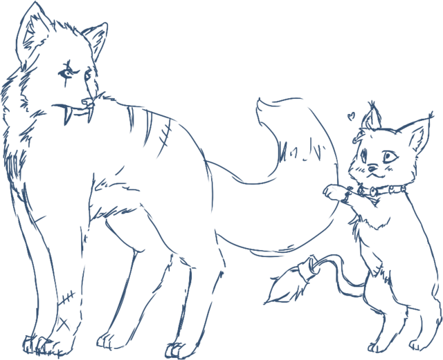 Lodur hunted like a normal dog would do to a cat. They saw her from a high distance, moving into the garden. They only waited for the right point to make her scream as such that she would never go near the garden again. Then they started, making a circle about the cat, barking like hell, but the cat wasn't shocked at all -- she got only angry, and she did something the puppies never expected: she attacked. And not the strongest one, oh no; she wanted the youngest, the weakest one. Lodur saw it before it happened, his sister screaming from the bites and claws from the cat, so he did that what a normal puppy at that age would never usually do. He violently attacked the cat. It hurt so much that Lodur couldn't stand it, and nobody helped him. In the end the cat ran away and left the puppies standing in a circle around Lodur, bleeding, a big gash on his chest, bites everywhere. He was half dead, and his youngest sister sat by his side.