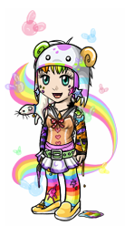 Pixol is full of energy and is always trying to get other people to smile. She’s very optimistic, and always tries to smile, even when she’s sad. She loves to paint and sing (especially both at the same time.) She paints mostly still life, colourful things like fruits and flowers, her favourite subjects being Pineapples and Tulips. She enjoys being warm in the sun, and watching the sunrises and sunsets. She became friends with Xsavio mostly because she thinks he listens to awesome music (which is usually techno, or in some different language.) She’d easily be friends with everyone, if her energetic over-enthusiasm didn’t drive most people crazy.