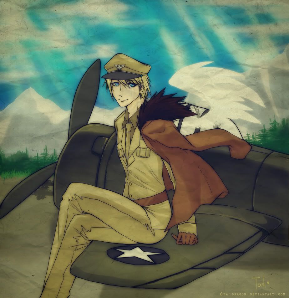He offers a care-free salute. "I'm Winfred 'Expressing' Harrier, ace pilot, at your service. I'll take you to the skies, whether it be rain or shine. This pair of wings can carry you up and higher, just give me the word."