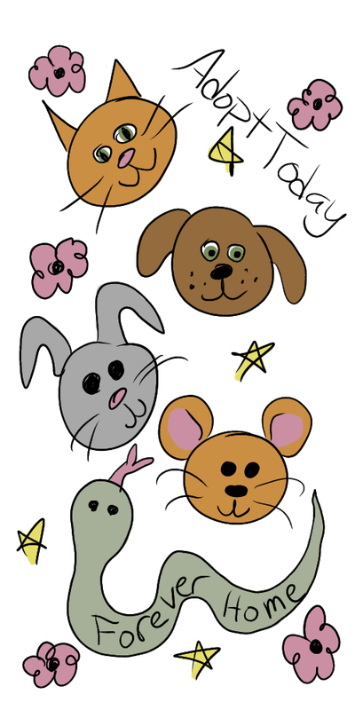 | Hello, welcome to the Forever Home Shelter. What kind of pet are you looking for? We have many sorts, cats and dogs, even some rabbits and snakes today. Go ahead and see what we have. I can let you spend some one on one time with any that you're interested in. If you find a pet you'd like to adopt, then we can go over the paperwork. All cats and dogs are spayed and neutered, and are up to date on immunizations, which is included in the adoption cost. We also accept donations of supplies for our animals. Including food, leashes, blankets, toys and pee pads. There's a donation jar by the register if you'd prefer to make a monetary donation. Not required, of course. | ![]() |