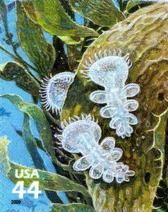 Melibe, a small delicate nudibranch, appreciates summer for its long days, greater sunlight, and plentiful forests of kelp to call home. Depending on the season and available food supply, Melibe will actually change colors usually between a delicate pale pink and a faded green. Slow moving and slightly uncoordinated, Melibe relies on travelling on kelp strands and other substrates.