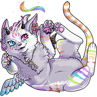 She is a frosty feline with a very dry, neutral attitude. Nothing seems to surprise her, she lives a pretty mono-toned life. She enjoys being wrapped up in blankets, reading books, studying crystals and magic, sleeping and eating sweets made by Aliciya.Identifying features include: snowflake wings (ref #8 OR artistic freedom within "snowflake") and icicle horns. She generally enjoys playing with makeup in the blues and purples,loves glitter and lashes only on the bottom. She wears a necklace which is a key made of ice. She has an optional blue nose bridge piercing. Hair color is white with pale blue highlights. She does always have one braid on the side with a snowflake hair clip at the bottom. Overall length and texture is up to artistic freedom however she usually wears a short bob with straight bangs. Clothing is up to artistic freedom. She enjoys anything furry, fluffy and warm.