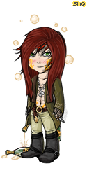 {Appearance}- Long, red hair; slim, sea-green eyes; 6'1" tall.