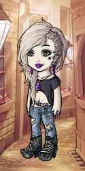 Katessyn preferred to be called Syn because she considered herself a simple girl and thought she should have a simple name. She always had an obsession with the Amethyst stone, so she had a fine collection of Amethyst jewelry as well as a lot of items of clothing, shoes, and accessories that had the color purple in them. Syn had her hair dyed white flowing down to her waist and shaved on the side. She always wore lipstick colors that stood out, mostly purple or black…she mostly always wore purple and black. She preferred crop top type shirts so she could feel the freshness of the wind blowing against her skin, and she mostly always wore torn jeans tucked into her favorite floral heeled boots. That was Syn.