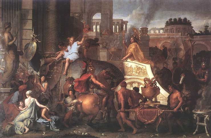 This painting depicts the moment when the Queen mistook Hephaistion for Alexander and Alexander is correcting her.