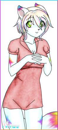 Appearance: Short and petite with multi-coloured hair that comes down to just below her chin. Her bright green eyes are generally lined with colourful make-up. She tend to favor dresses or skirts.