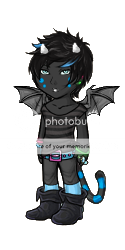 What about me? Well, my name is Fascinator. I adore bright colors on dark things, especially neon blues. I'm a Demi and Feli mix, don't judge me. I suppose I am considered curious... it usually gets me into trouble. I'm nothing but a fun loving 15 year old, although I'm really short for my age, only at 4'9". I love cuss words because I feel they add more color to languages, and what could be wrong with that. I love animals a lot, especially reptiles, although I'm not the kind to just go and rescue them. I really do want an iguana though.. - BUT ONLY A NEON BLUE ONE. I am sorta a loner,.. I guess? No one's really given me the chance to say hello.. I don't think I'm that scary if you can get past my wings and horns, I'm a nice kid. Really, I swear. What?... WHAT?... Don't give me that look. I'm a good boy, just ask Mommy.