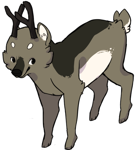 Blobby stands 2.1 feet tall, meaning that he comes up to the hip of your average person. His antlers add another foot or so, though, so he tends to seem a bit bigger. From nose to tail, he's 3.11 feet long.