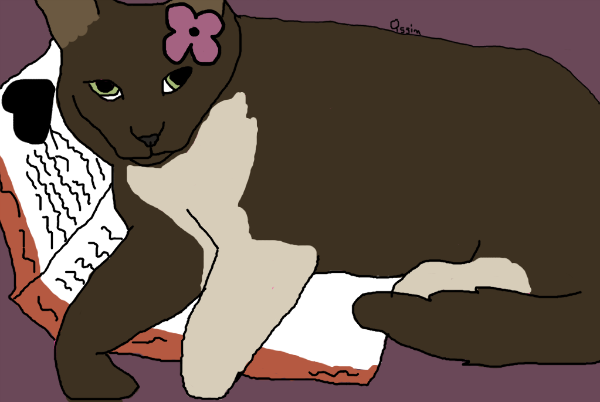 And she was mine. The stable owner let me take her home. We already had 2 cats back at home - one for each of my brothers. We used to have 3; the one that used to belong to me had passed away not too long ago. Charcoal, I had called him, and he was gray too. I hadn't thought about getting another cat until Blossom put herself in my path at the stables, and I knew I was meant to have her.