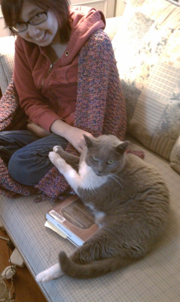 When we got home, we were met by our newly-three-legged cat. I was distraught; but all my fears subsided when I saw her get up and walk-limp-hop on over to me. She was fine; she was alive. And she was Blossom; of course she would be determined to get over this problem and just keep going.